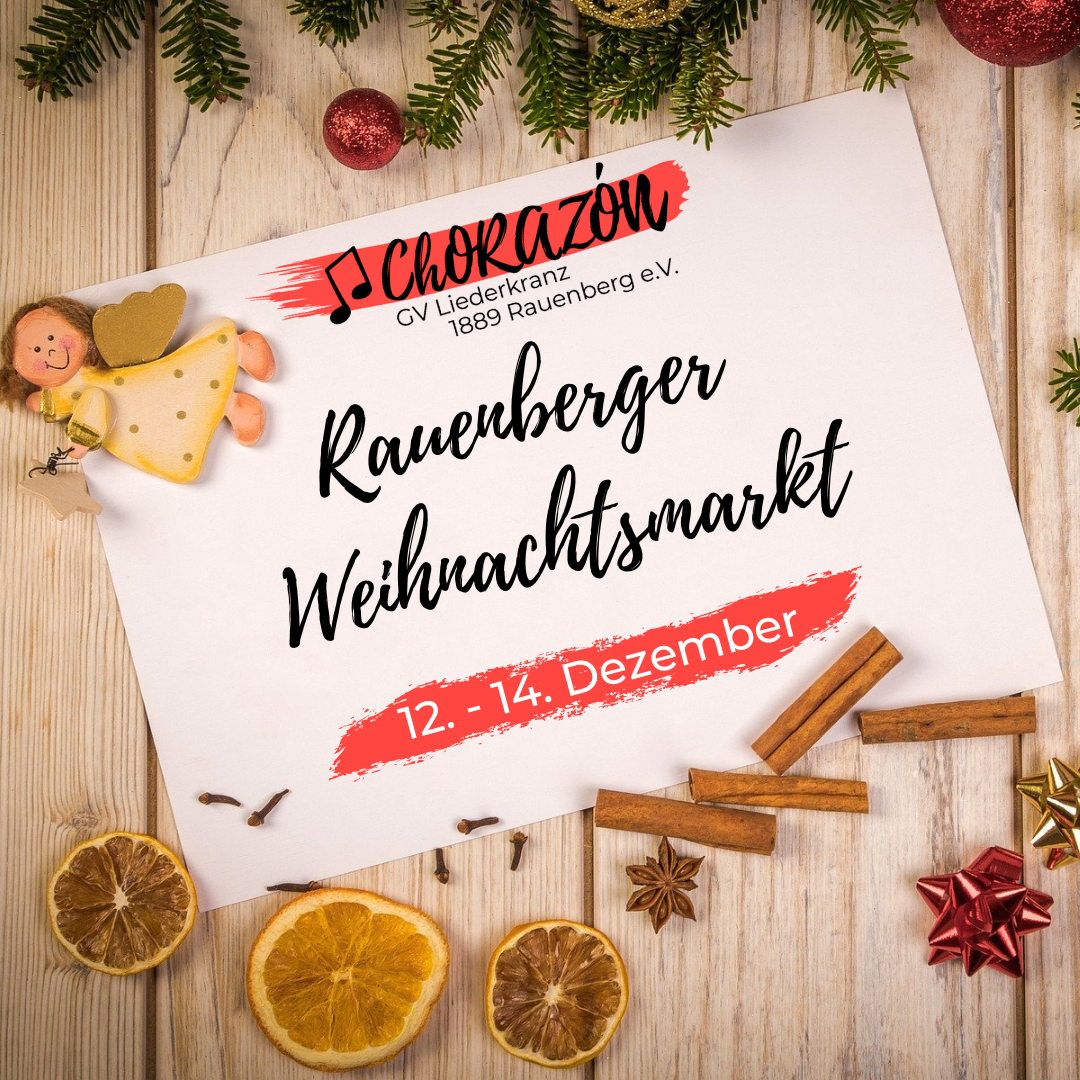 Vom 12.12.2025 bis 14.12.2025 wird der Liederkranz wieder mit einem Stand auf dem Rauenberger Weihnachtsmarkt vertreten sein und für lukullische Genüsse sorgen:
